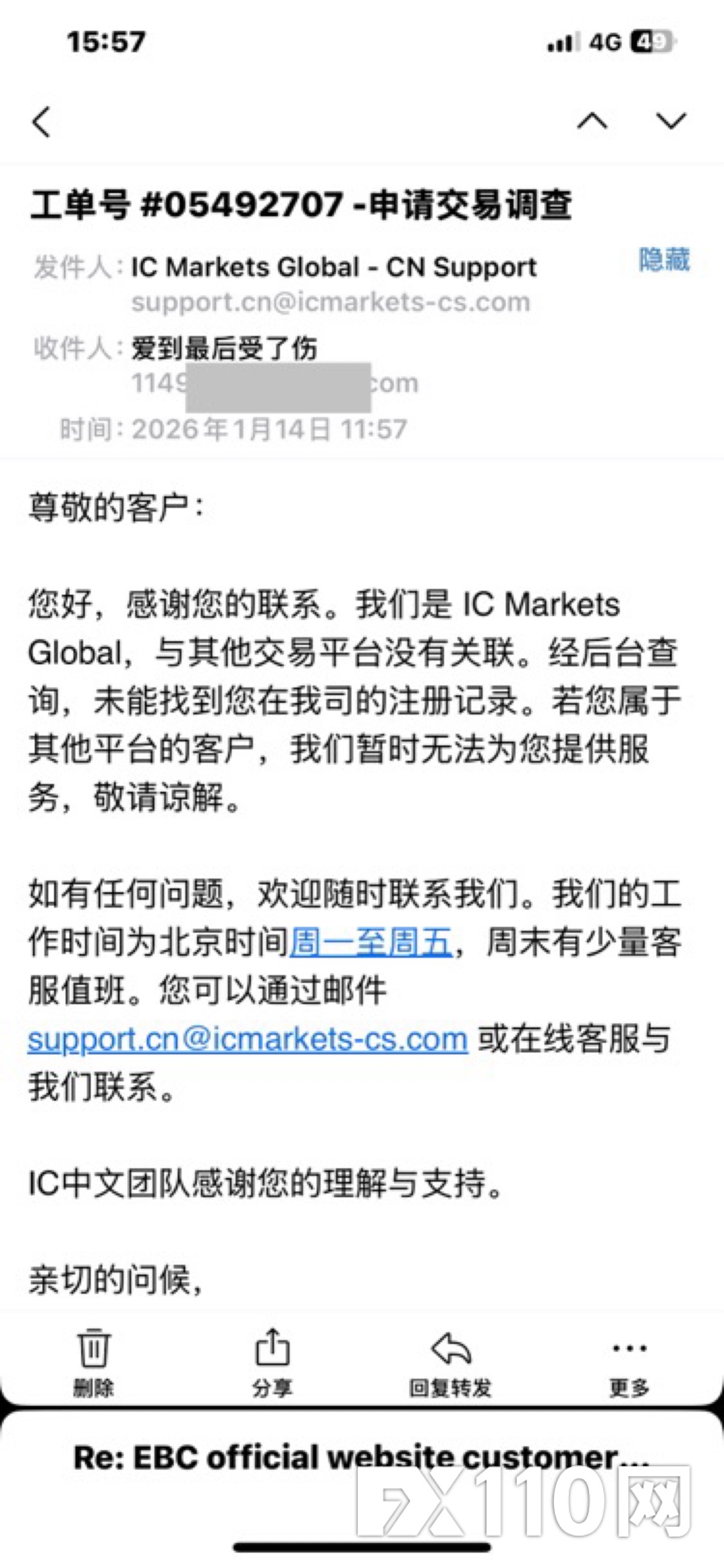 外汇调解回复让申请交易调查。结果碰词IC平台。给ic平台的邮箱让去申请交易调查
