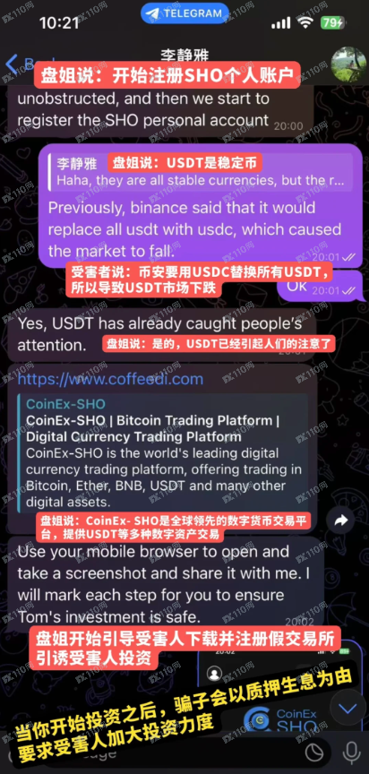 当受害者没有更多资金时,教唆受害者去银行以及网贷平台进行贷款,当受害者转入一定资金后,coinex-sho平台以不合规为由冻结受害者账户的提款权限,要求缴纳平台代码使用费才能解冻其账户。